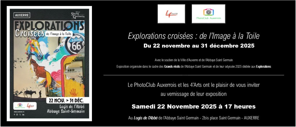 S’inscrivant dans la dynamique de ce Festival, le PhotoClub Auxerrois et Les 4’ARTS ont engagé une collaboration : ils vous proposent un voyage au croisement de la photographie et de la peinture ou de la sculpture.